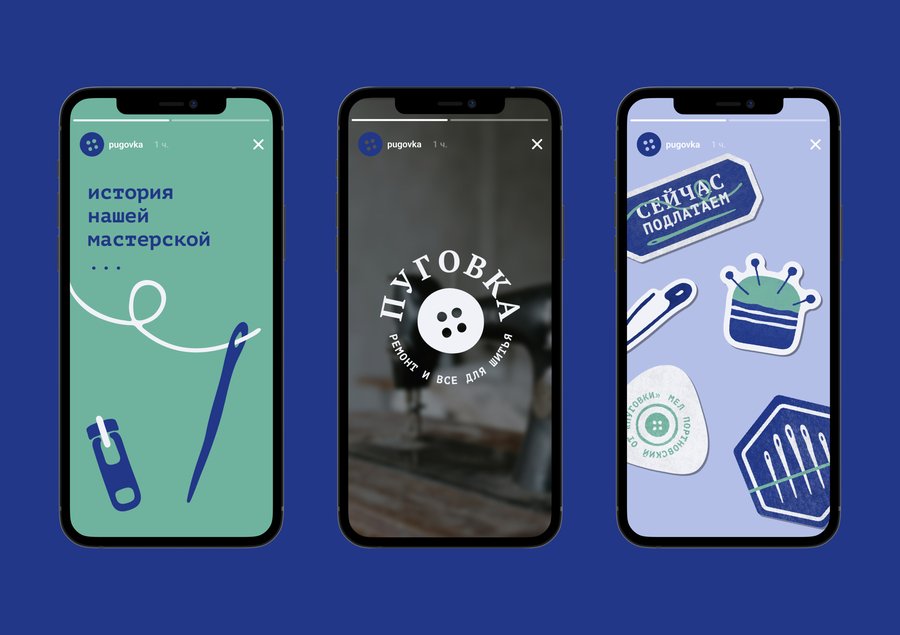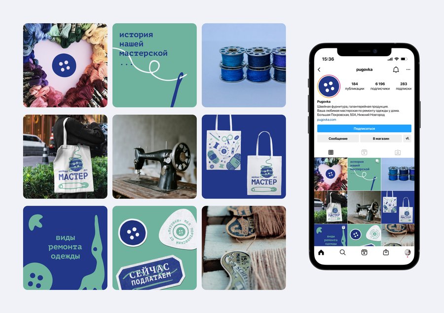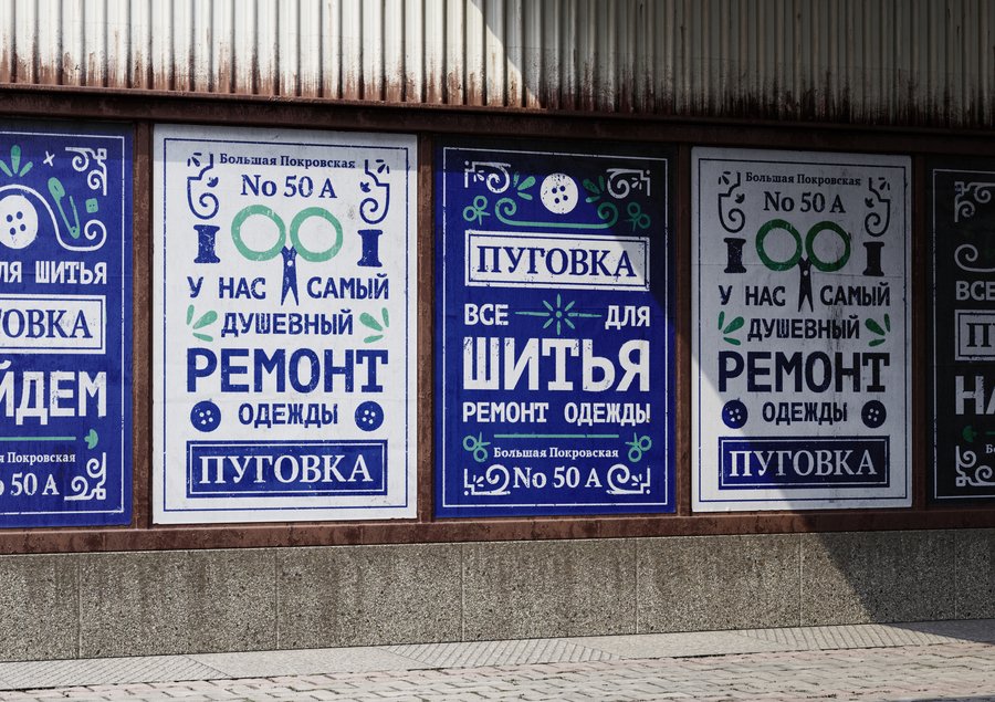 Брендинг по брифу для магазина-мастерской по ремонту одежды «Пуговка».