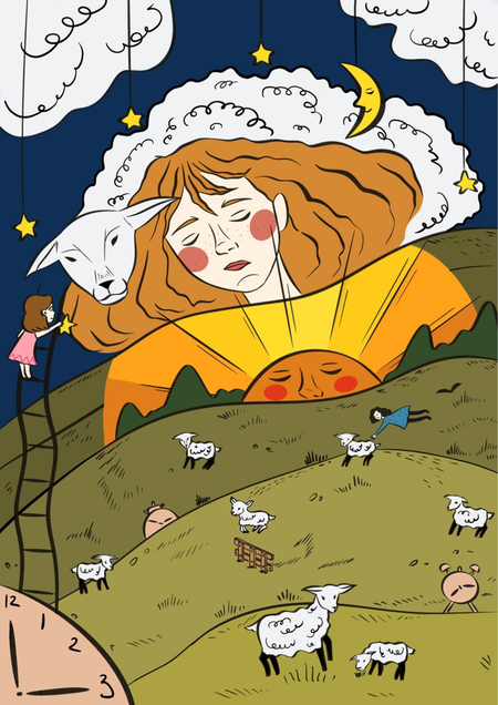 Многообъектная сюрреалистическая иллюстрация, посвященная процессу погружения в сон