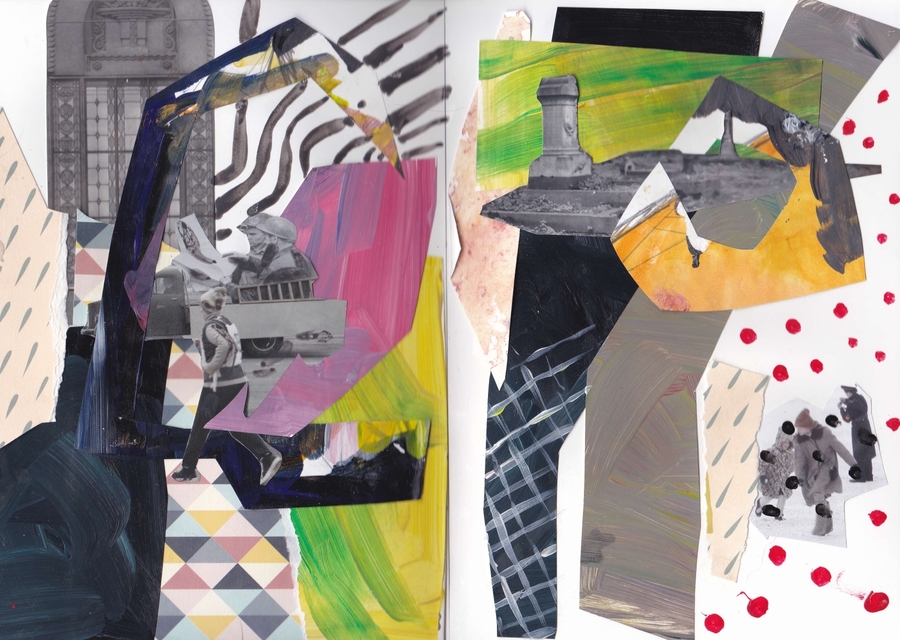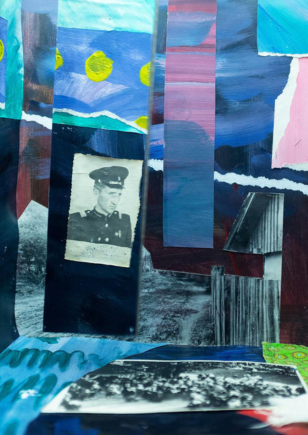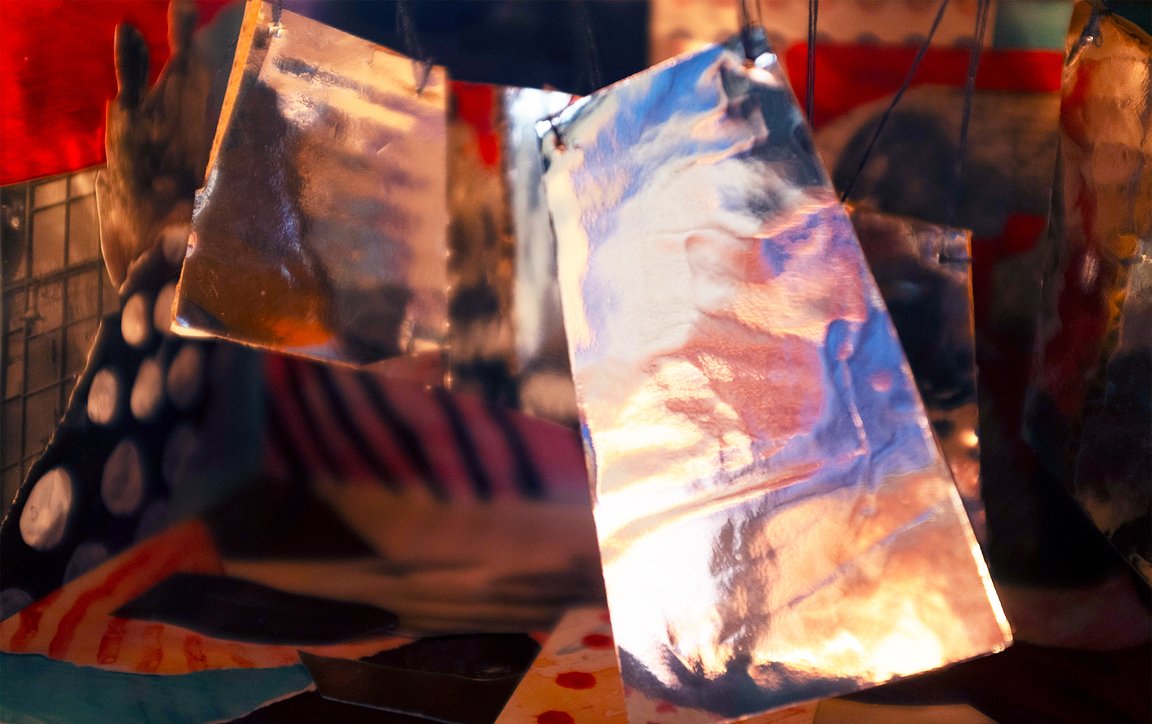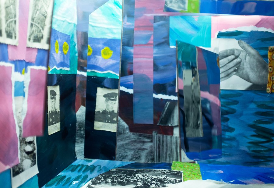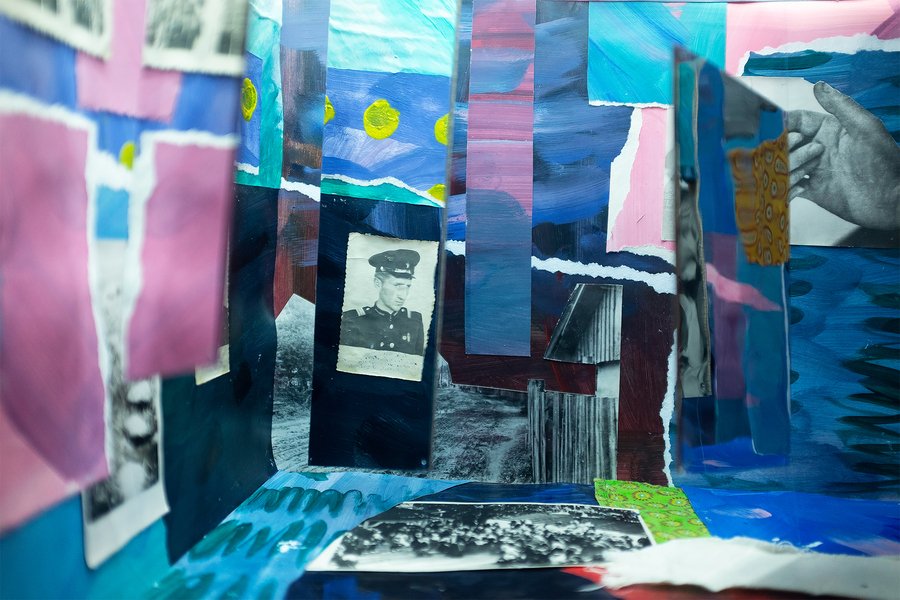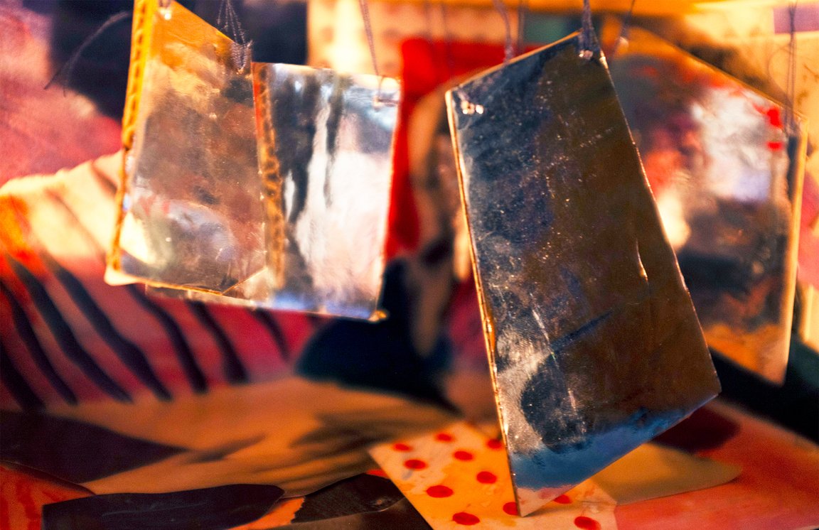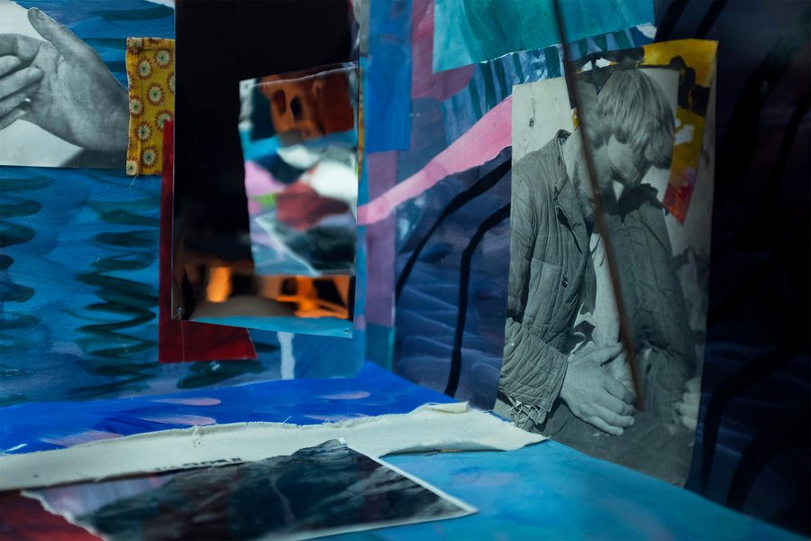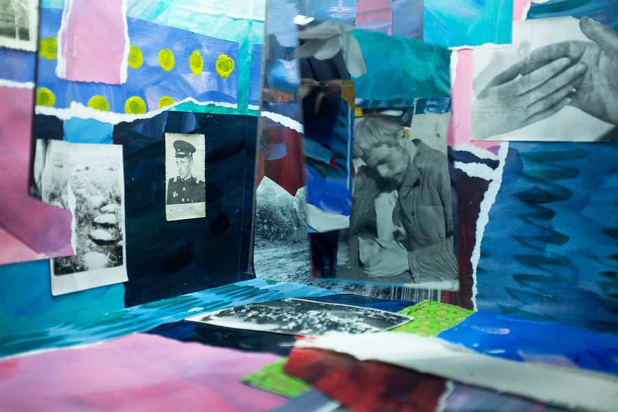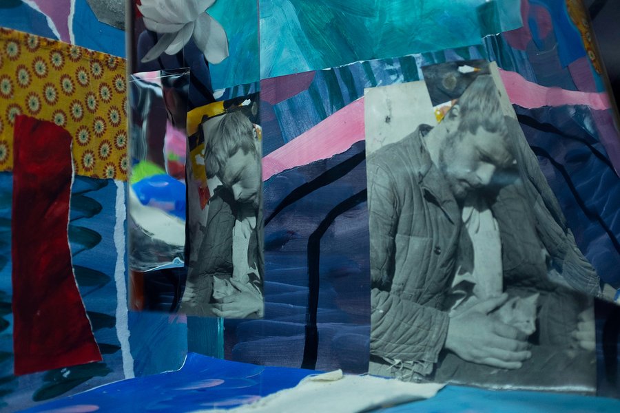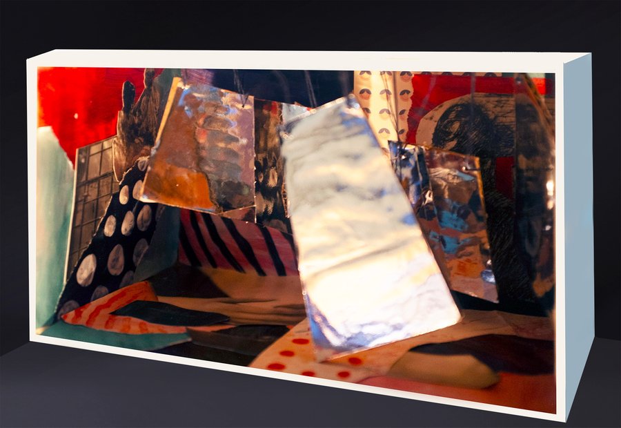 На внутренних стенках показаны картины из разных периодов жизни одного человека, а внутри зритель видит как на самом деле сложилась картина через призму осколков. В композиции есть вертикальное зеркало, в котором наблюдающий отражается и взаимодействует с объектом, таким образом влияя на события внутри витрины.