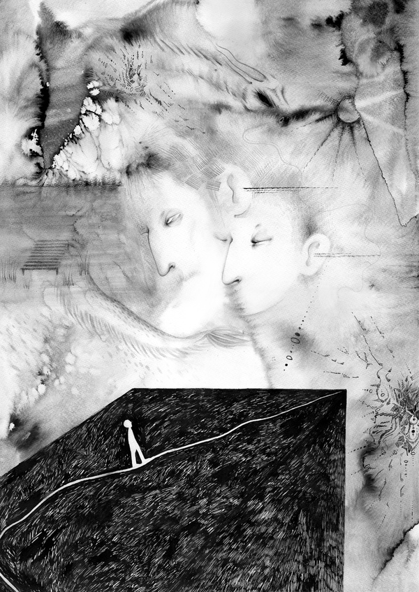 «Тишина близости», тушь, бумага. 594×841 мм