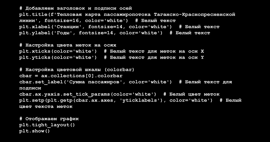 Потом для тепловой карты отделяем значения пассажиропотока Таганско-краснопресненской линии.