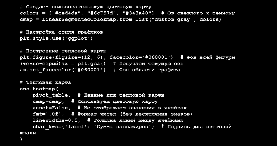 С помощью метода pivot_table создаем сводную таблицу, в которой по вертикали будут находится года (2021-2024), по горизонтали названия станций, а в ячейках — суммы пассажиров.