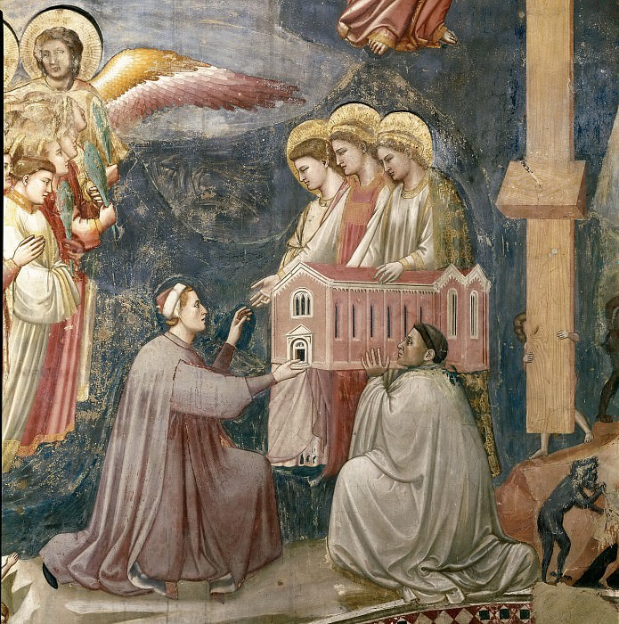 Каждая фигура Джотто становится монументом человеку, будь то святой или простой пастух. Образы мастера собираются вокруг самого человека и его поступков, — герои проявляют природу всем видом через свои жесты, мимику, поведение.