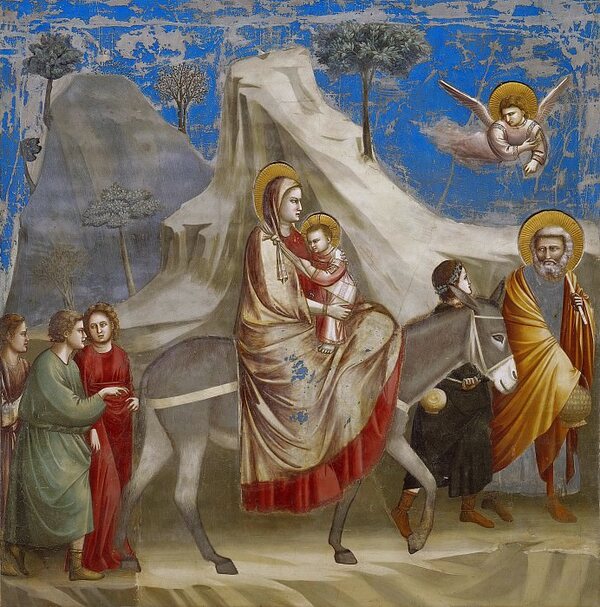 «Маэста (Величание Мадонны)», Чимабуэ, ок. 1290 г. / «Бегство в Египет», Джотто ди Бондоне, ок. 1305