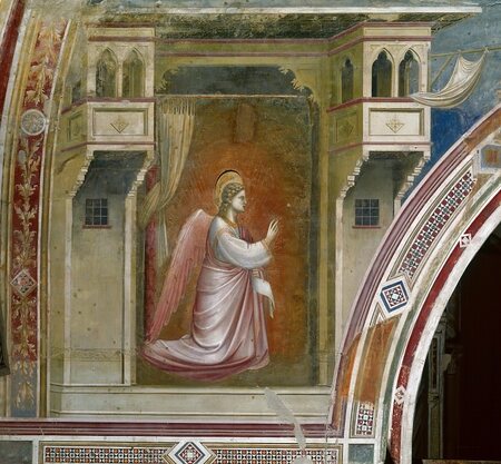 В «Благовещении Святой Анне» Джотто демонстрирует пример нарратива: жест ангела, указывающего на Анну, словно передавая весть.