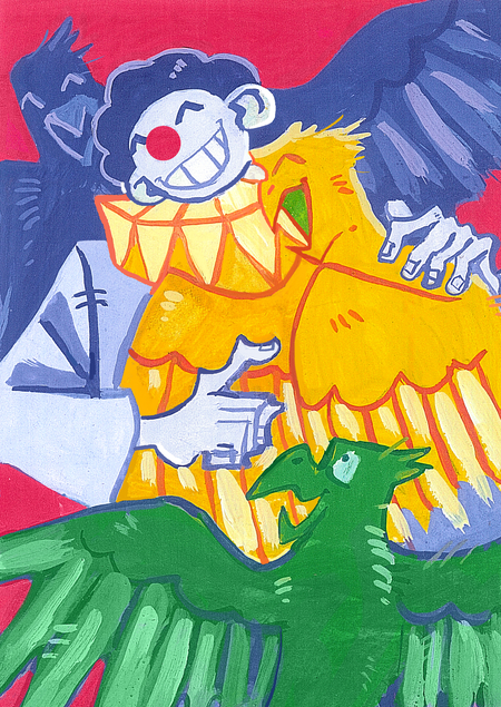 Пернатые товарищи такие разные, но они, как один, всегда готовы помочь клоуну. Правильно говорят, что всё можно пережить, если у тебя есть верные друзья!