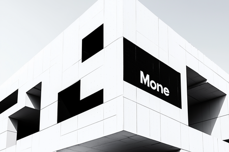 Логотип: Logo «MONE» swiss-typography style, black text on white flat background