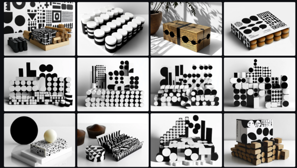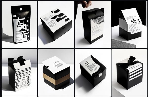 Благодаря возможности знакомится с сгенерированным материалов других пользователей, удалось найти удачный промт для продукта/упаковки и подогнать его под тему проекта: