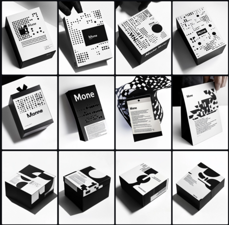 Swiss typography, grotesk font, «Mone» logo simple text.