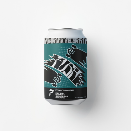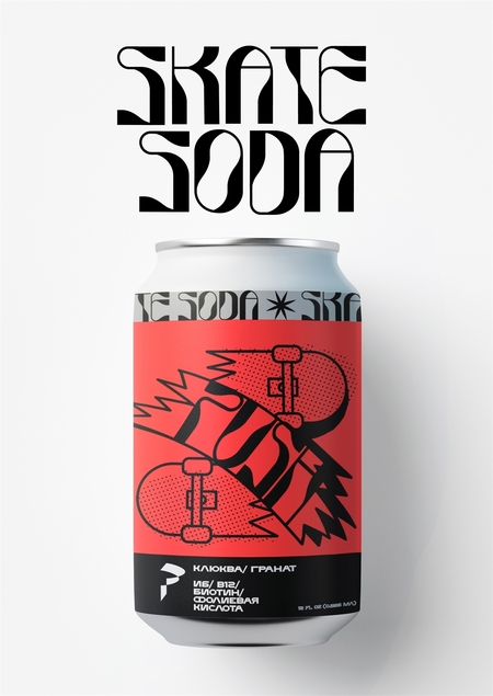 Темой второго модуля была разработка упаковки для потребительского бренда. Поэтому на месте «скейтшопа» появилась газировка для скейтеров. Необходимо было провести анализ рынка, выучить язык потребителя, и понять, какую его проблему мы должны решить. Содовая «push» — это «жидкая удача», потому что, сделав глоток, можно совершить самый невероятный трюк.