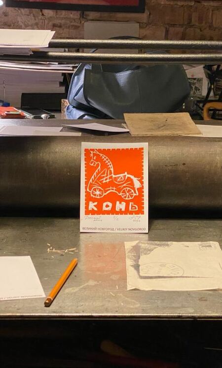 Линогравюра «Конь». Выполнена в Новгородской печатне.