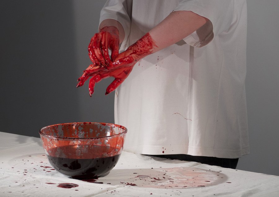 Мой перформанс построен вокруг ритуального омовения, но не водой, а кровью животного.