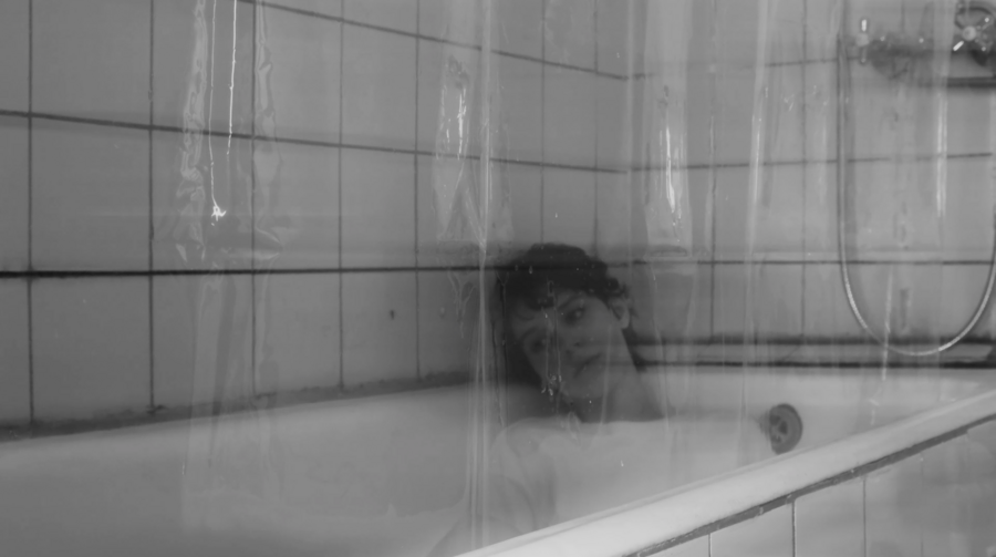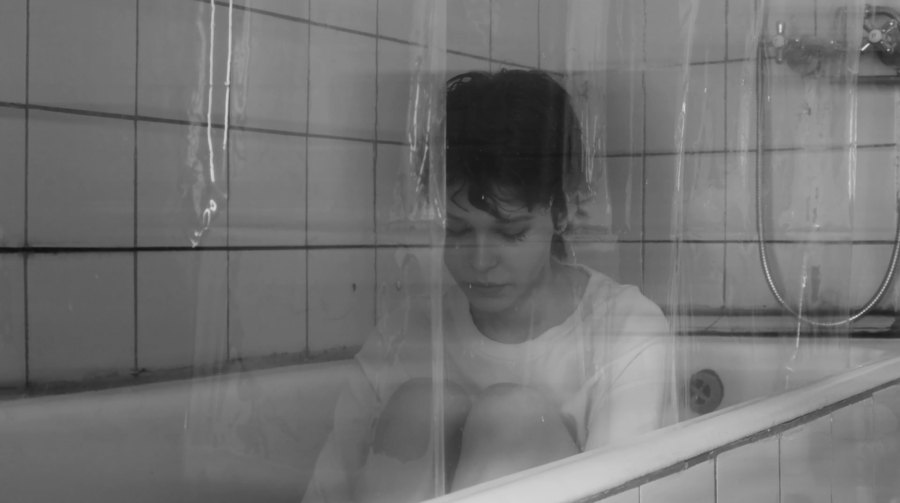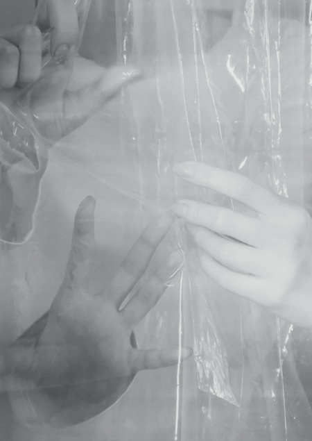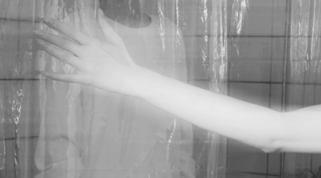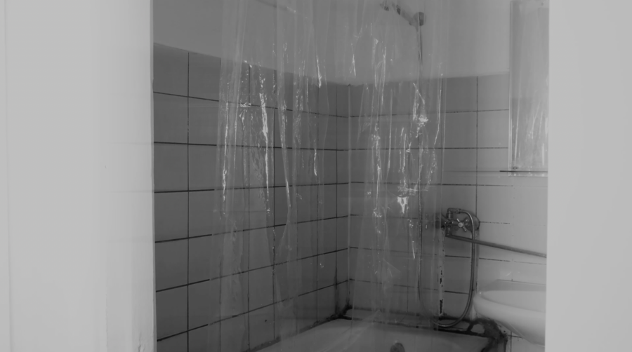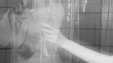 Пространство за прозрачной шторой для ванны становится зоной тишины, необходимой для существования творческого процесса. Действие разворачивается в пограничной зоне между наблюдением и уединением. Сопротивление внешнему вмешательству переходит в жест разреза — не как демонстрация, а как способ продолжить движение, сохранив внутреннюю автономию.