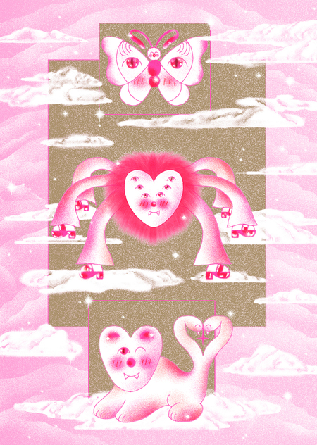 Серия иллюстраций для антологии Bubblegum vol.3, издательство Jumbo Press. Книга с участием 40 иллюстраторов со всего мира, упакованная в один большой сборник, напечатанный на ризографе.