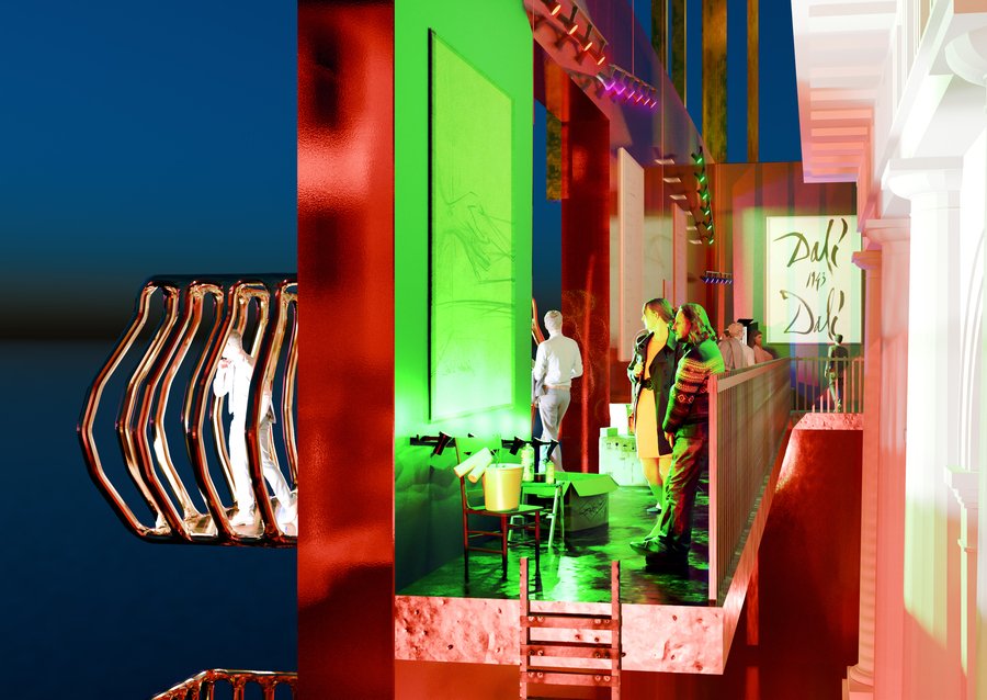 При создании идеи для графического фасада я задалась вопросом: что бы сделал сам Сальвадор, если бы перед ним оказался пустой белый манеж, лишенный ярких цветов?