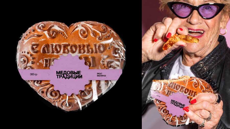 Create packaging for gingerbread «Honey» brand. Use pined photo as logo. The packaging should reflect a contemporary aesthetic while incorporating traditional Russian design elements and the theme of honey. Color palette should consist of black, yellow, white colors