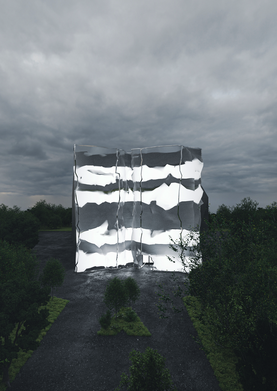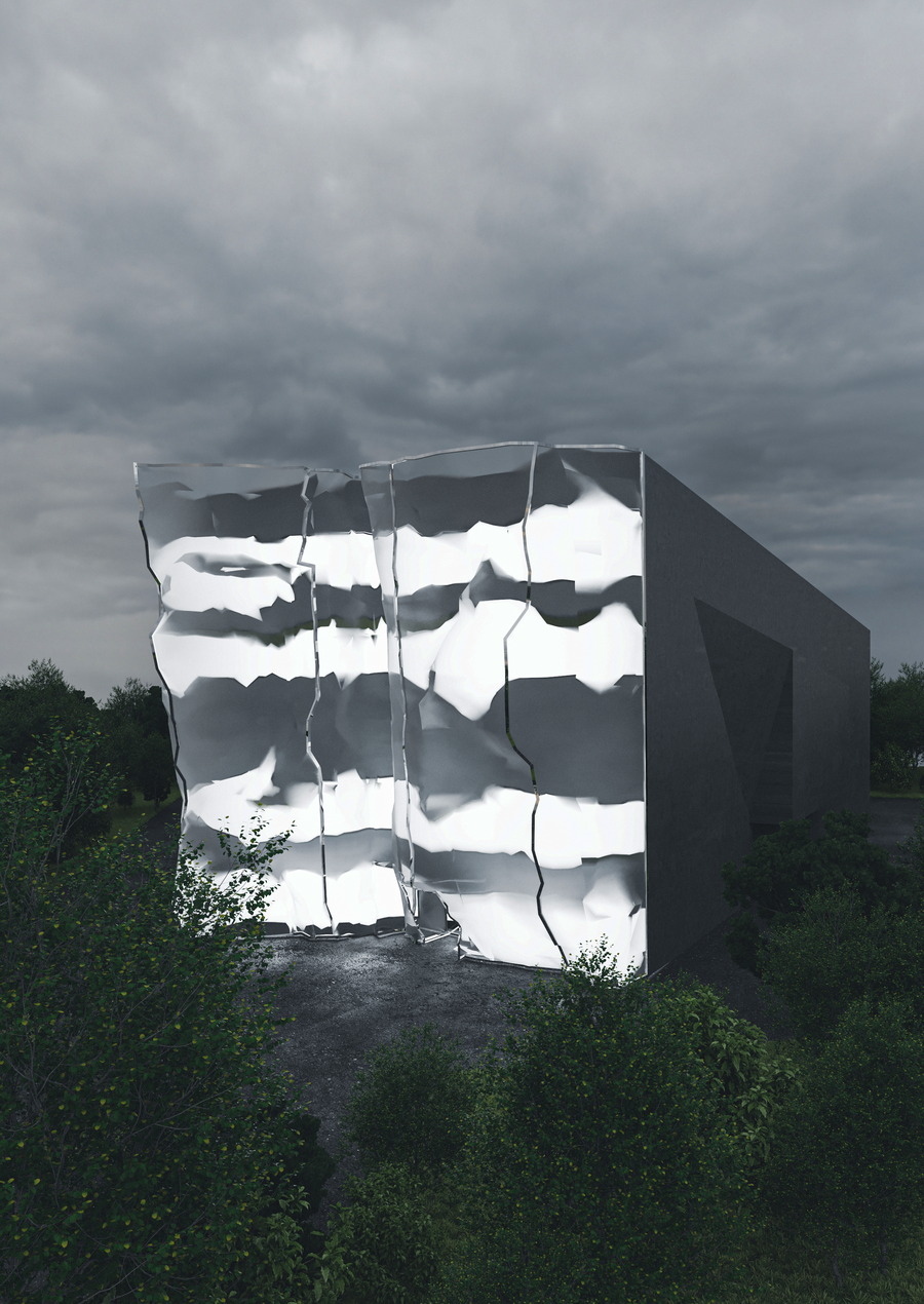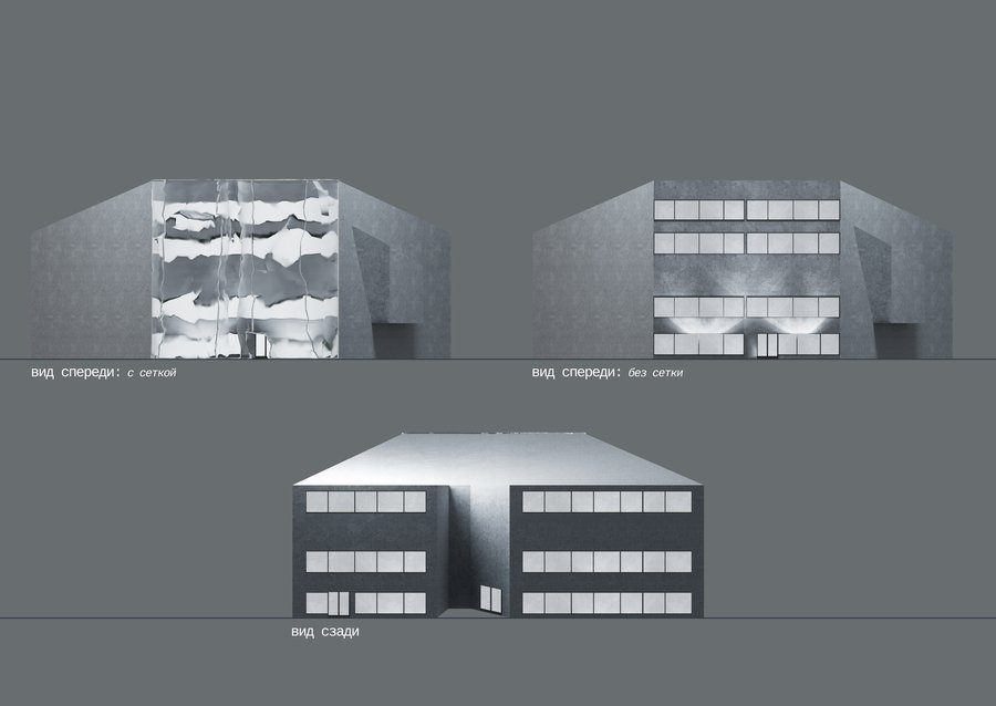 В результате фасад превратился в монолитную конструкцию, тогда как стеклянная сетка, установленная спереди, стала символом разлома.