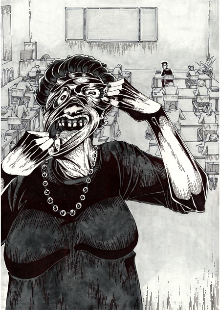 Иллюстрации посвящены теме школы и ее тайнам. Нередко ученики могут замечать странные детали или необъяснимые явления в коридорах известного им здания. Кто-то может случайно обронить слова о том, что их учитель оборотень, и подобный слух быстро разнесется. А может это правда?
