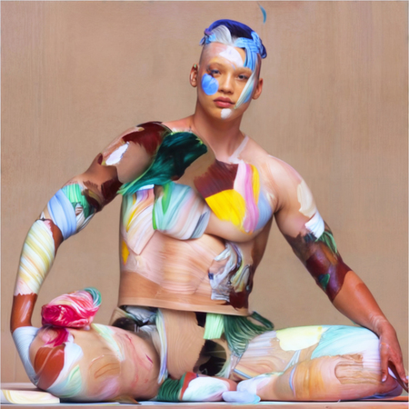 Обученная нейросеть хорошо смогла передать текстурные мазки из картин Мэтью Стоуна, построение тел из мазков и цветовое разнообразие.