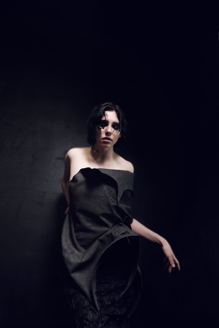Александр Маккуин делал коллекцию, вдохновленную фильмом «Голод». Из фильмов о вампирах Александр выбрал не тот фильм, где вампир- страшное, безобразное существо, а тот, где вампир — изыскан, красив и архаичен. Такой подход Александр обычно и использует, он говорит о чём-то страшном и ужасном, прекрасным, эстетизированным языком. Из таких фильмов есть еще «Выживут только любовники». В этом модуле, при создании дизайна, я опиралась на детали визуального языка этого фильма.
