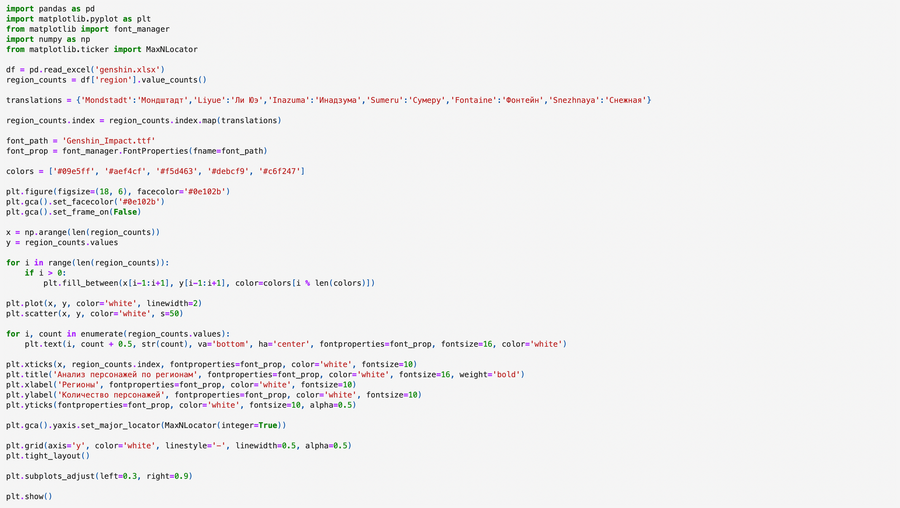 Для своего финального проекта я выбрала данные о персонажах игры Genshin Impact (обновление 4.1), найденные на kaggle.com. Я посчитала, что они будут интересны для анализа, так как это достаточно популярная игра, где игроки могут тратить реальные деньги на виртуальные предметы и персонажей, что делает их ключевыми для доходов компании. Изучение таких факторов, как редкость персонажей, их элементы, регионы, типы оружия и 3D модели, поможет выявить общие критерии, влияющие на предпочтения игроков и стратегию разработчиков из HoYoverse. В заключении я постараюсь определить персонажа, который наиболее соответствует распространённым стандартам игры.