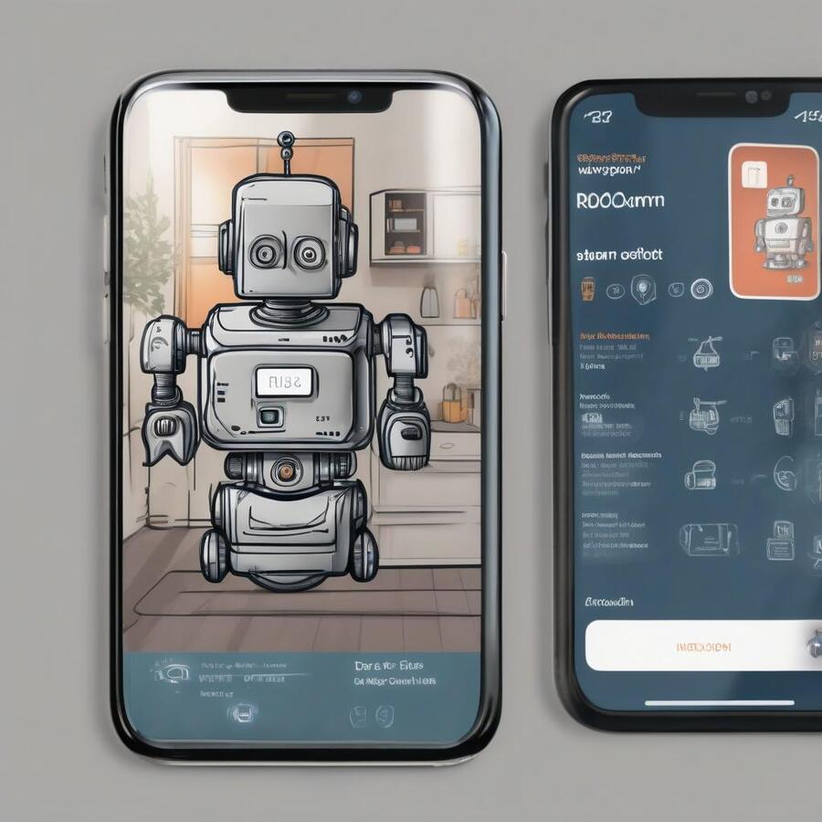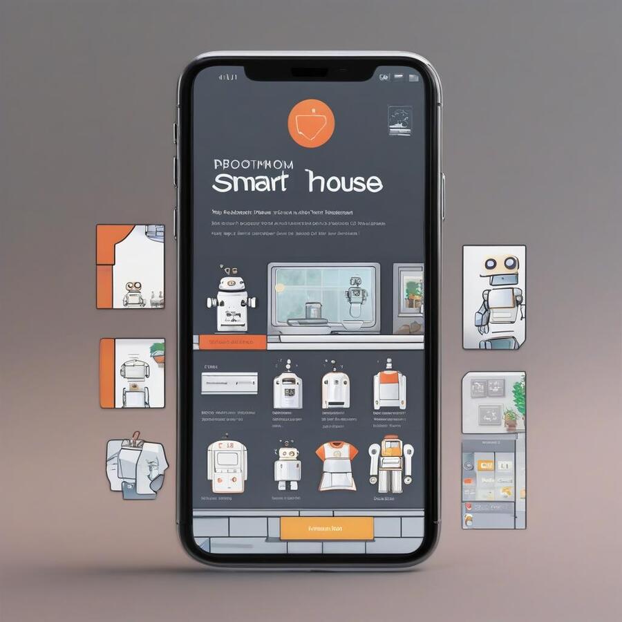 art of robot on the package, a mockup of a food. merch of the square robot smart house app a mockup of la lunch, merch of the robot app in chromium