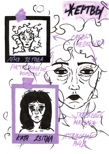 Эта работа является частью группового проекта «Крайм-Тайм» — графической серии, представляющей собой личные дела вымышленных преступников, осуждённых за абсурдные деяния.