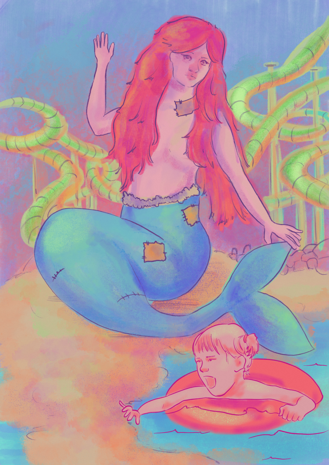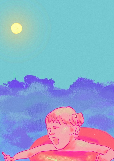 «Лето!» — это серия иллюстраций, вдохновлённая воспоминаниями о поездках на море, аквапарками, надувными фигурами и эстетикой вейпорвейв.