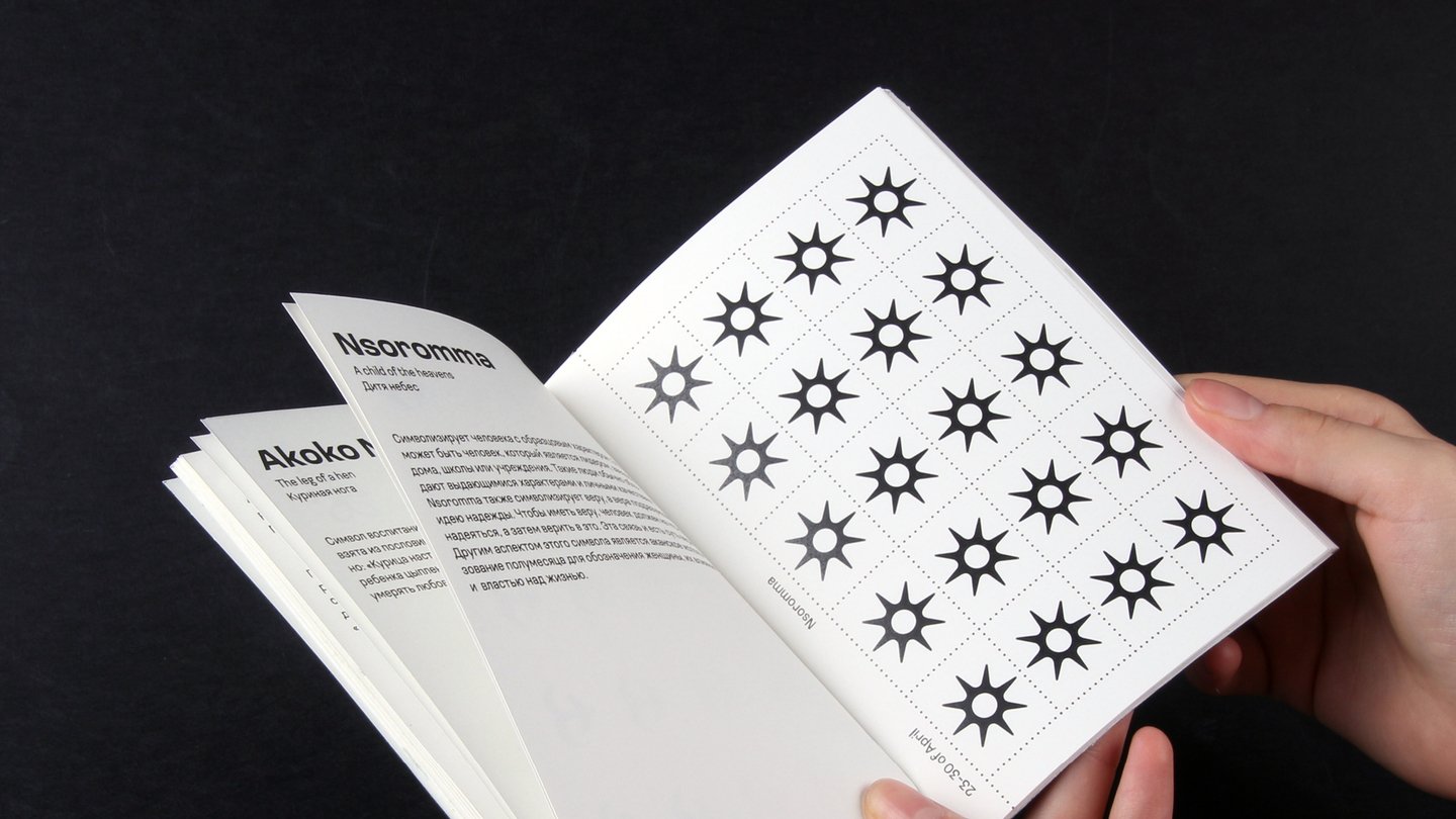К четырем сезонным плакатам прилагаются книжки, в которых располагаются определения 12 символов сезона, их расшифровка и философское значение. В развортоте прикреплен лист со знаками адинкры для дальнейшего их приклеивания на плакат.
