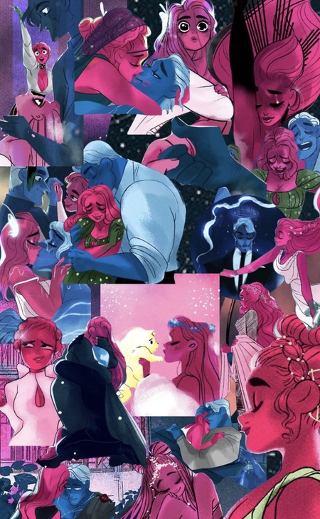 В романе «Предания Олимпа» Аид также предстает перед нами в образе заботливого, любящего и внимательного бога. По аналогии с мифическим Аидом, он показывает свою спокойную и способную на человеческие переживания натуру. Также можно увидеть, что Аид устал от бесконечных вечеринок и постоянных слухов, которые сопровождают богов Олимпа. Он стремится к чему-то более глубокому, чем повседневная и бессмысленная буря событий, и ищет свой собственный покой. В своих иллюстрациях бога подземного царства художница использует синие оттенки.