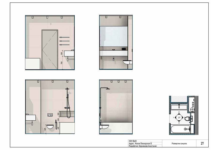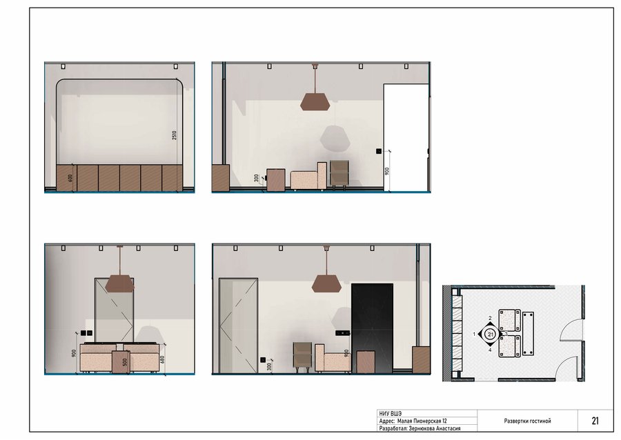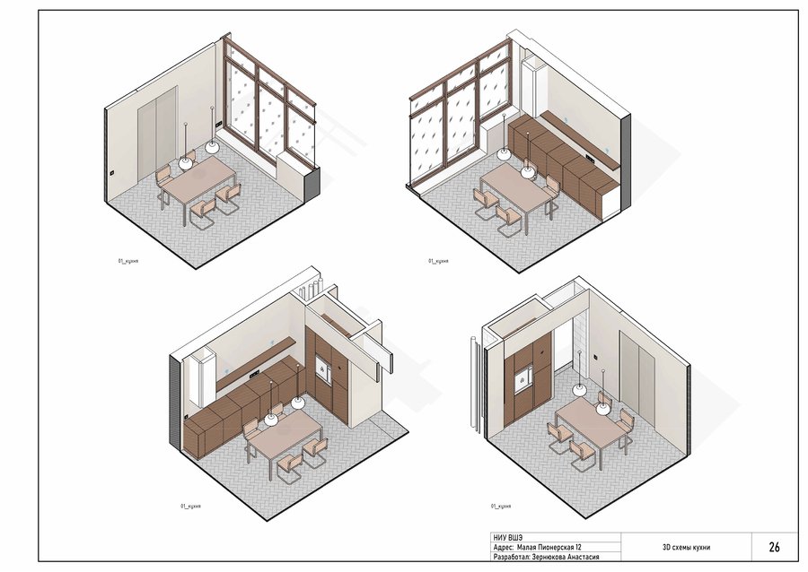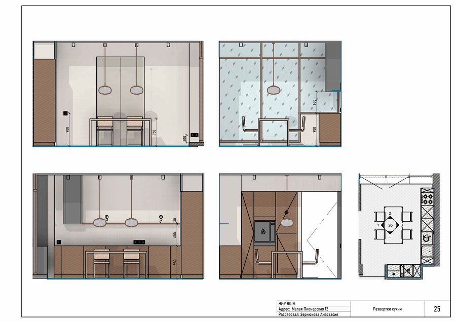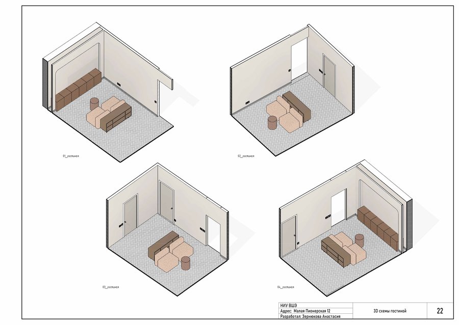 Данный проект разрабатывался для молодой пары, которая предпочитает лаконичность. В проекте много дерева и пастельных оттенков. Чертежи выполнены в программе Revit.