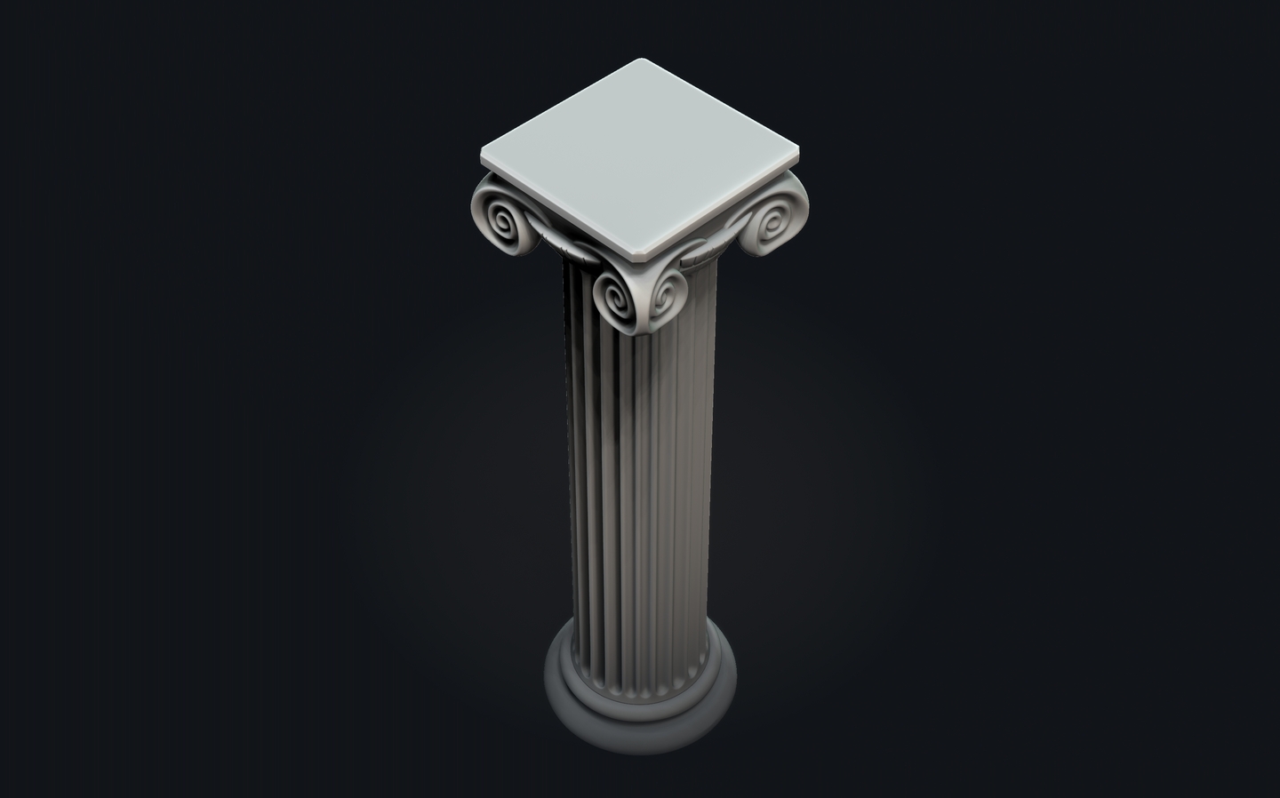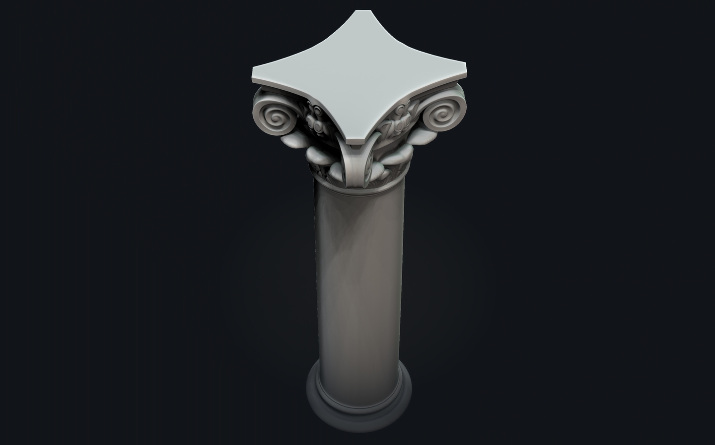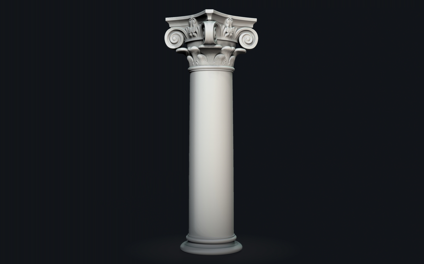 Инструкции по дизайну: Требуется высокая детализация и симметрия Волют (завитков) на капители. Должна быть четко выражена База внизу колонны.