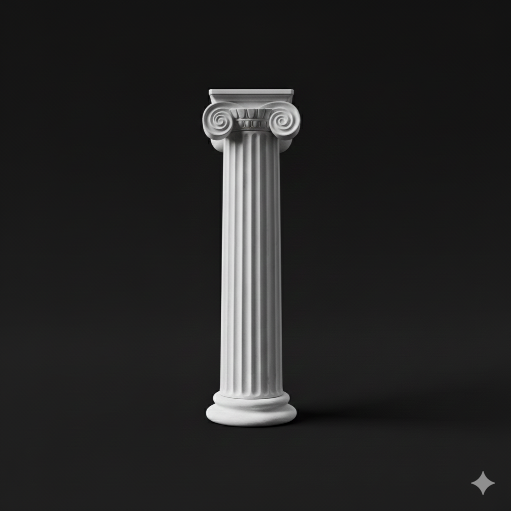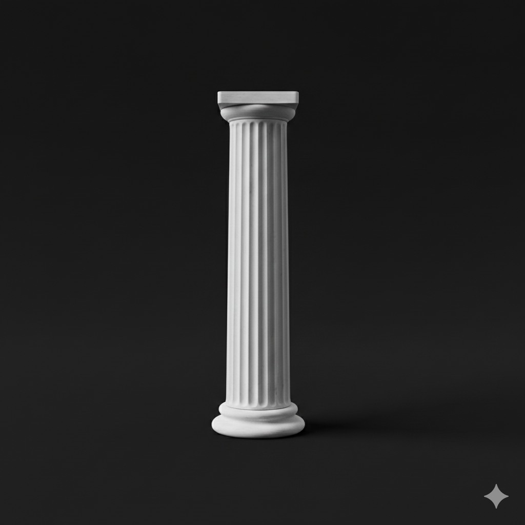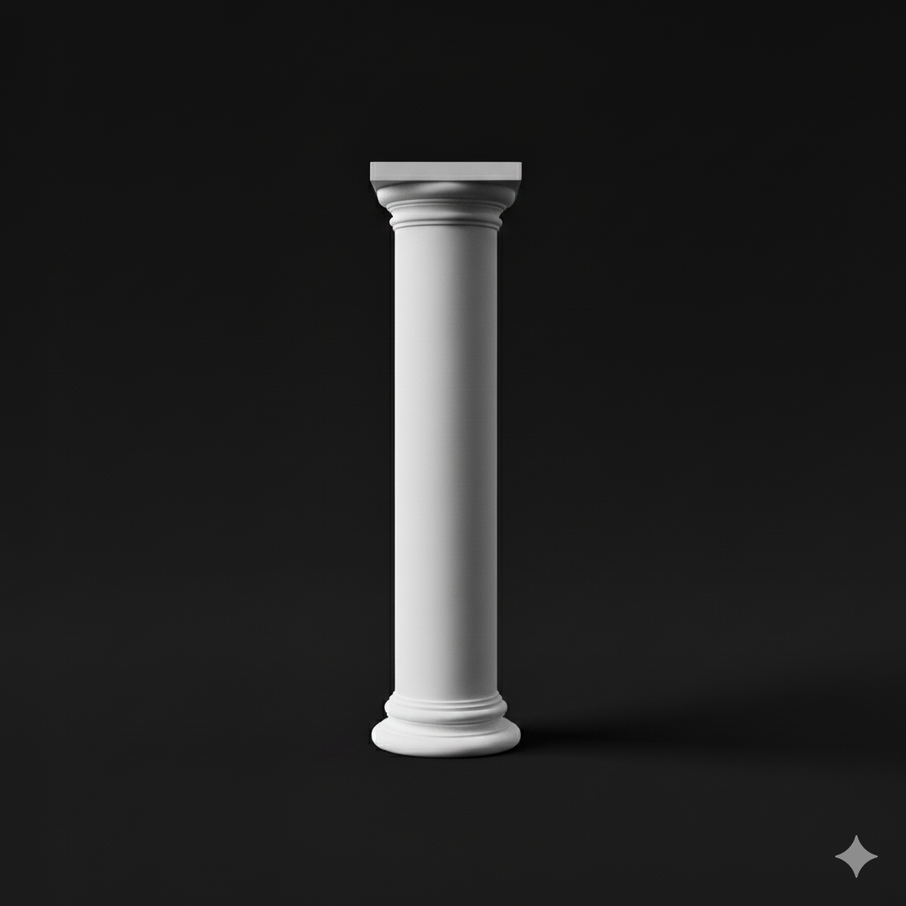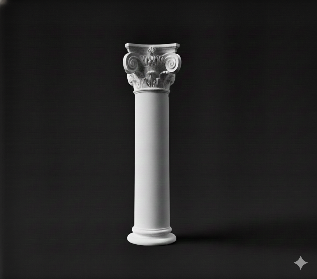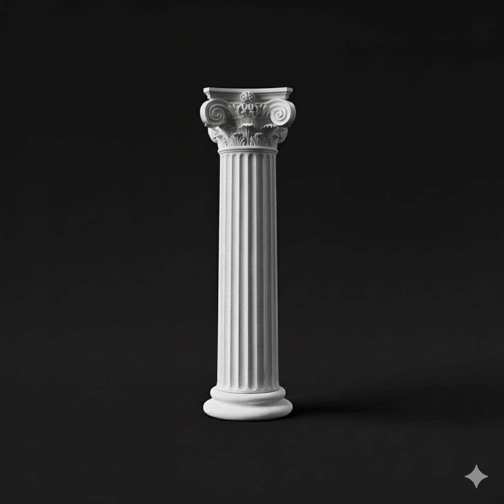 Инструкции по дизайну: Капитель сочетает Волюты и Листья Аканта. Критически важно обеспечить четкое разделение всех элементов. Наличие Базы и каннелюр.
