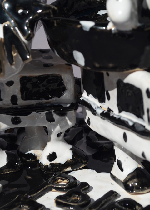 Керамическая скульптура, запечатляющая забавные обороты речи. Фигуры иллюстрируют сочетания слов, контрастных, как черный и белый, которые неожиданно оказываются рядом в речи.