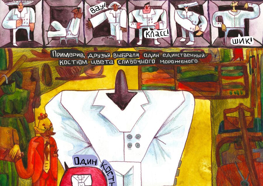 Серия иллюстраций к рассказу «Чудесный костюм цвета сливочного мороженого» Рэя Брэдбери, который превозносит идею дружбы, особенно существующей среди бедности и трудностей.