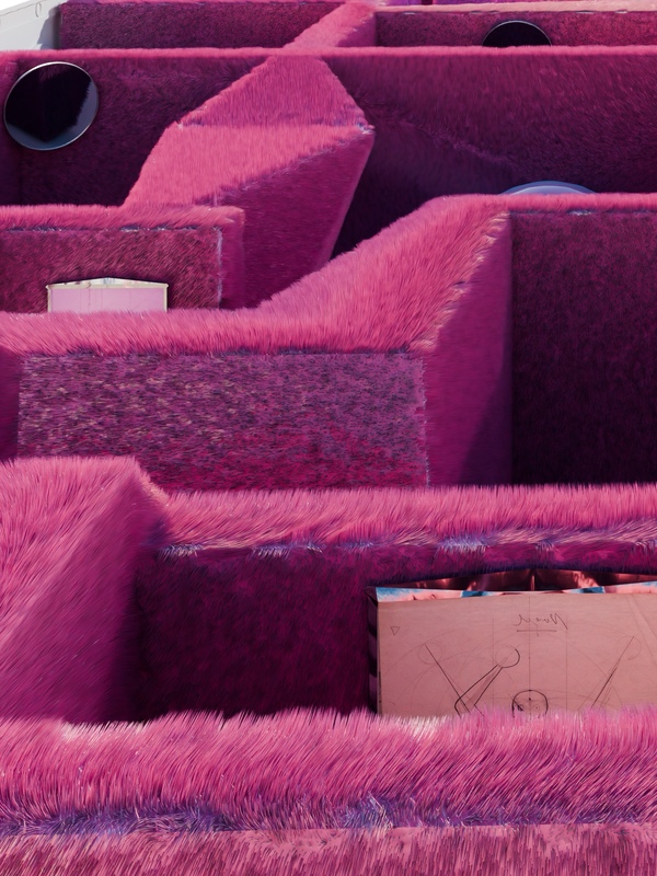 Лабиринт становится символом внутреннего поиска, где форма, структура и материя взаимодействуют с интуицией и логикой. Стены лабиринта выполнены из жевательной резинки и меха, создавая тактильный и визуальный контраст, который отражает диалог между жёсткой рациональностью и мягкостью воображения. это не только физическое пространство, но и умственная игра, где каждый поворот предлагает зрителю новые смыслы и вопросы. Лабиринт призван пробудить в человеке стремление к самопознанию и нахождению личной логики в хаосе современности.