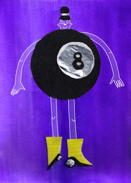 Серия графических листов превращает бильярдную атрибутику в дискотечные костюмы.