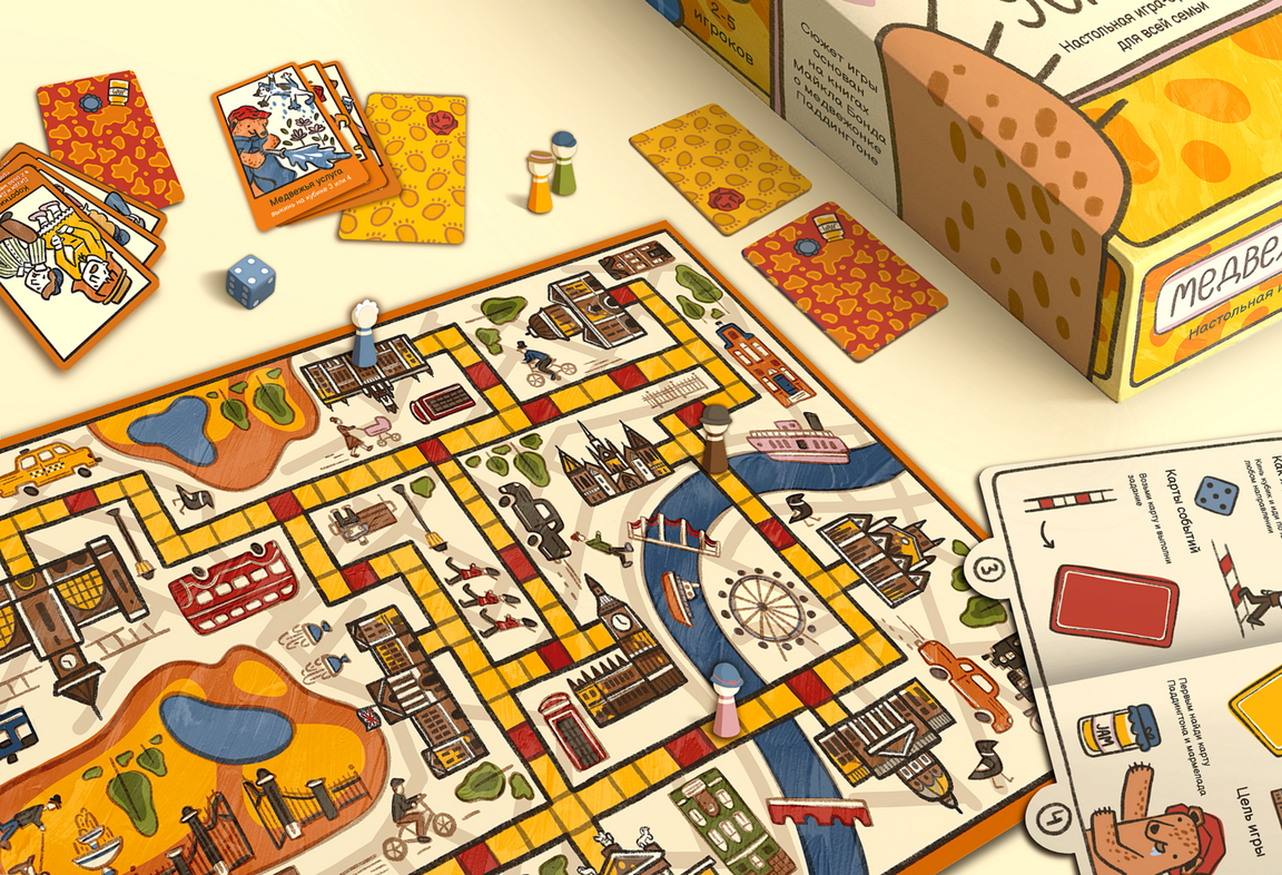 Настольная игра-бродилка для всей семьи по мотивам серии книг о медвежонке Паддингтоне Майкла Бонда.