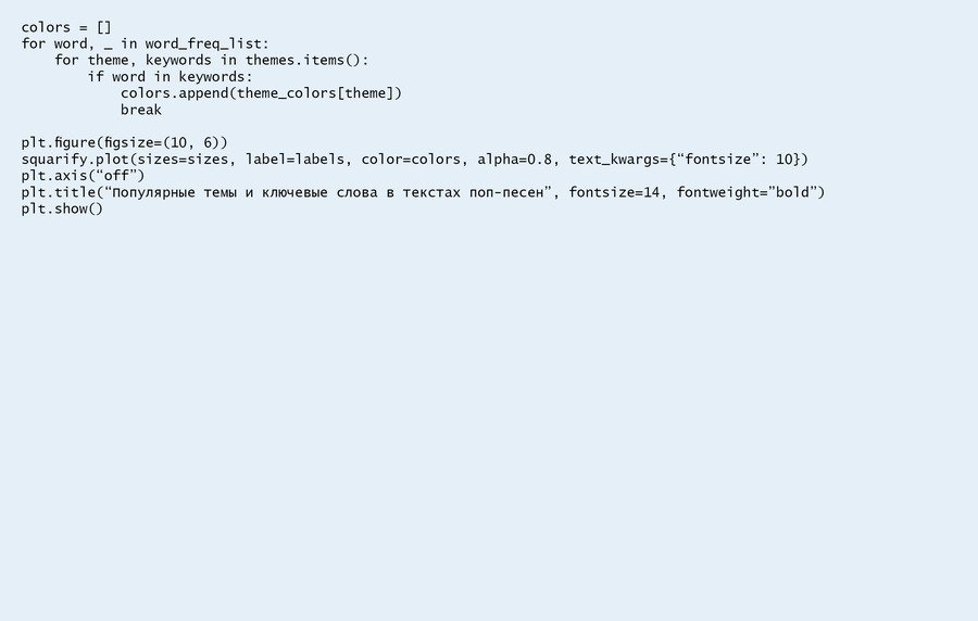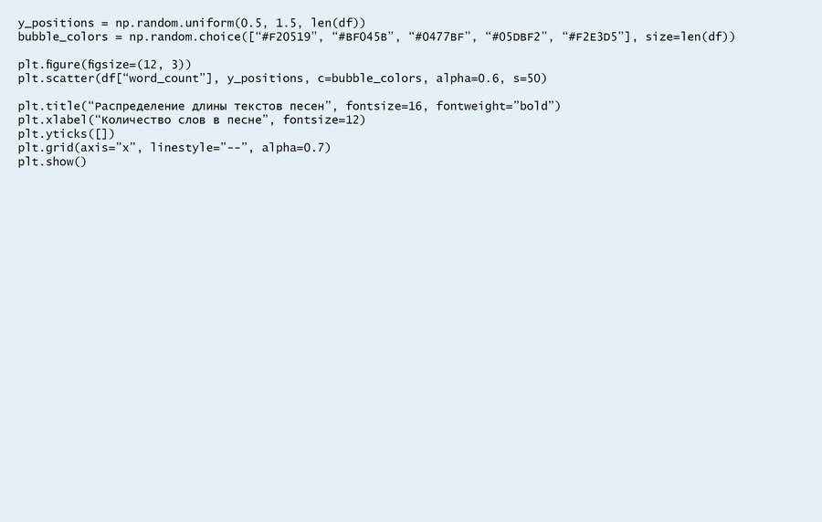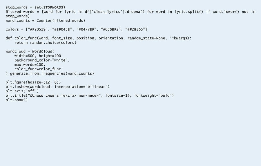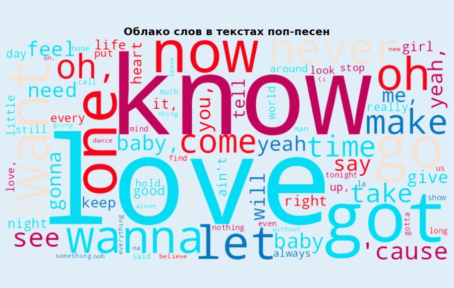 В рамках этого проекта я решила провести анализ текстов поп-песен, используя различные методы визуализации данных, чтобы выявить закономерности.