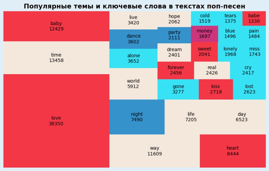 В целом, исследование доказывает, что поп-музыка — это жанр, который ориентирован на массовую аудиторию и в то же время достаточно разнообразен по тематике.
