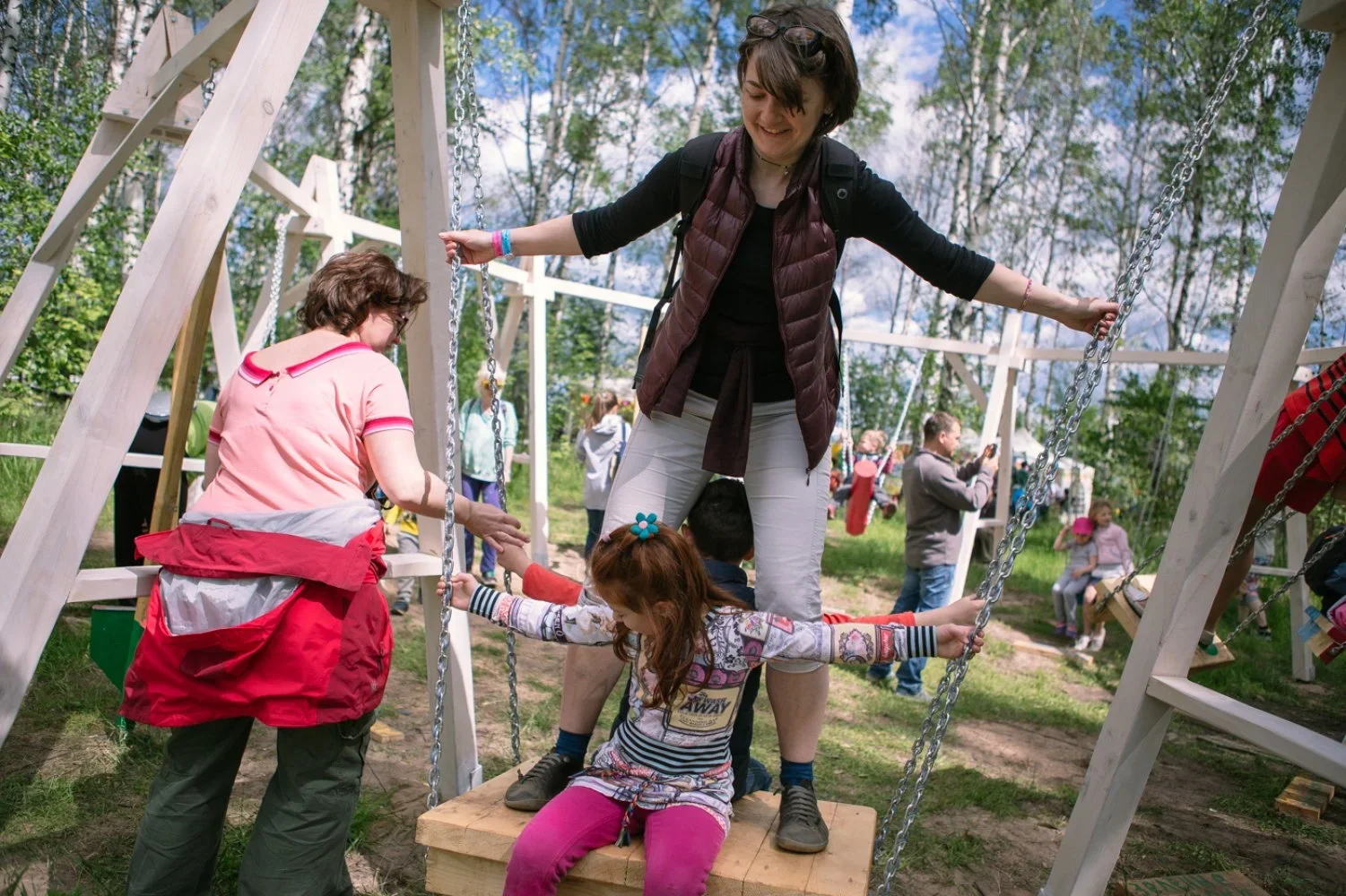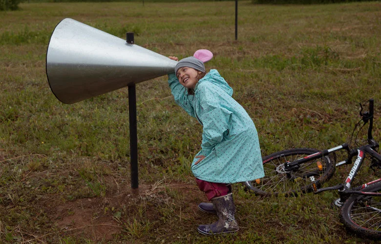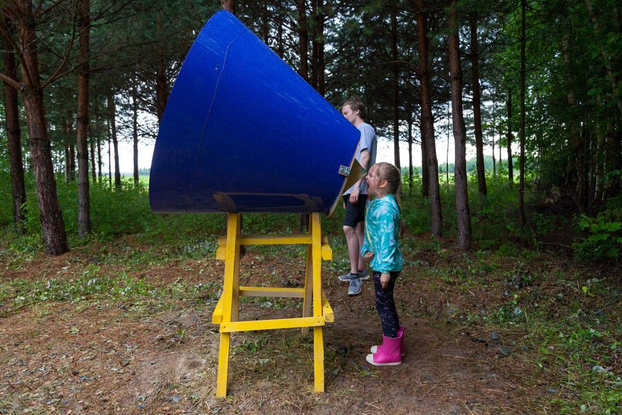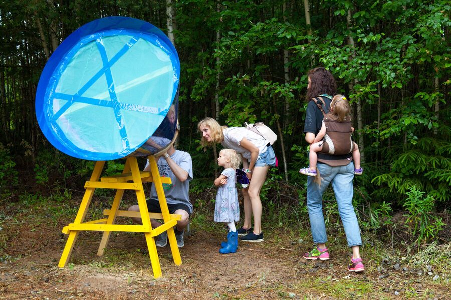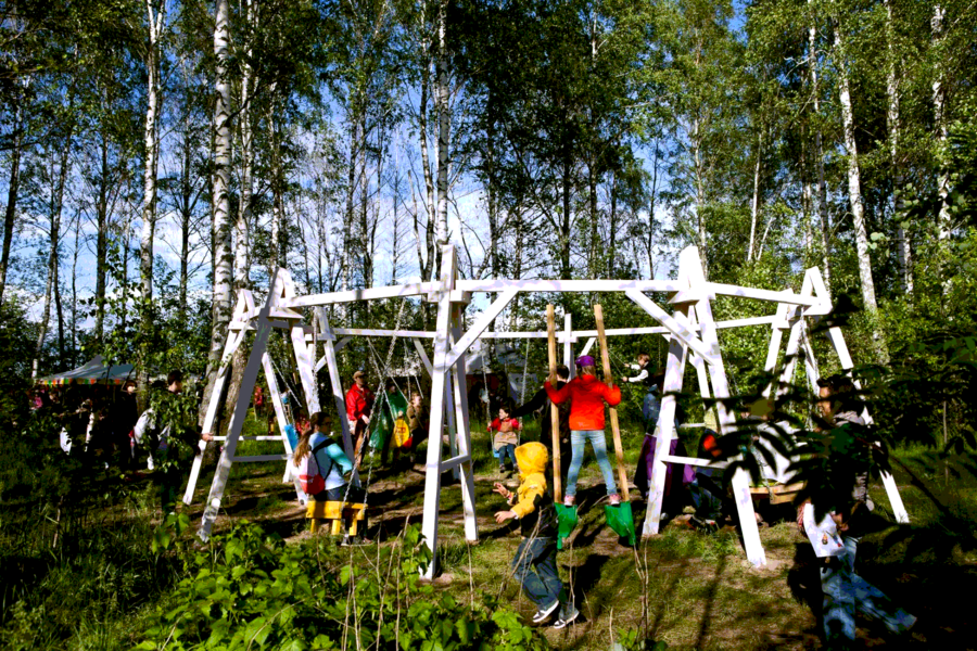 Ещё одним проектом, воплощенном в результате конкурса среди детей, стали «Гнёзда-крутилки», придуманные девятилетней Машей Игнатенко. Конструкции, представленные на фестивале, точно передавали собой название работы: это были именно напоминающие птичьи гнёзда полусферы, в которые можно было забраться и отдохнуть, или же наоборот — позволить лишней энергии выйти из тебя и крутиться, пока хватит сил.