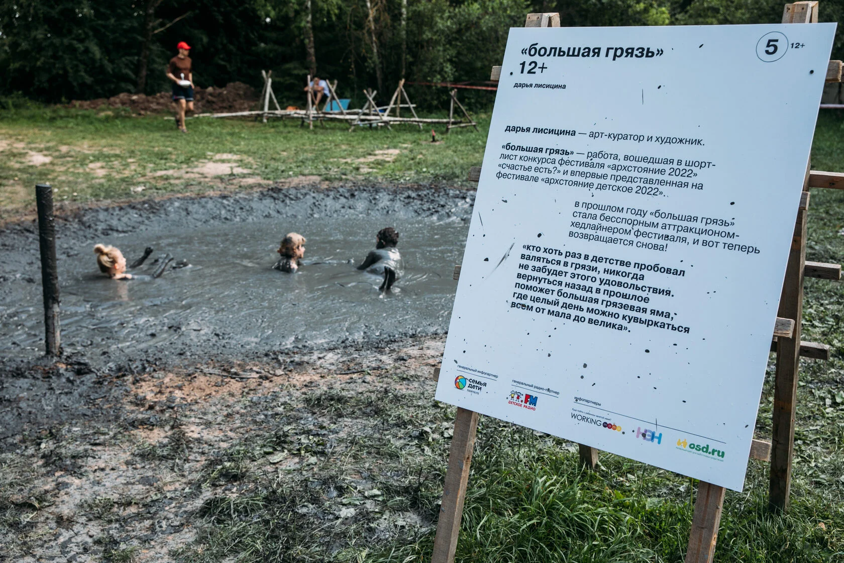 Один из самых популярных проектов «Архстояния детского», который по решению художественного совета вошёл в число постоянных участников фестиваля, стала «Большая грязь» авторства Дарьи Лисицыной. Художница задается вопросом о том, что может называться искусством, а что — нет, предлагая посетителям парка искупаться в огромной яме диаметром в шесть метров, полностью залитой целебной грязью. Проект был в качестве эксперимента предложен к участию в детском фестивале, и в итоге стал одной из главных точек притяжения всего события. Концептуальная составляющая работы вполне очевидна, но это никак не умаляет ее ценности. Все посетители фестиваля, и дети, и взрослые, с большим энтузиазмом приняли участие в проекте, что подтверждает изначальный замысел автора: предложить вспомнить «то счастье, с которым дети купаются в грязи».
