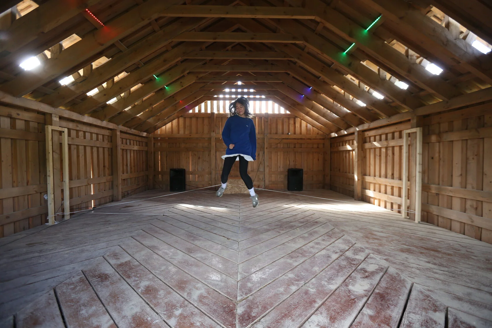 Для звуковой инсталляции резинки были размещены между стоек, в которые были вставлена специальная звуковая аппаратура с сенсорными датчиками. В момент, когда посетитель проигрывал — наступал на резинку, задевал ее ногой, — генерировался звук, каждый раз отличавшийся от предыдущего. Сами художники говорят о своей работе так: «Каждый прыжок — звук твоей новой симфонии. Проект отражает семь периодов взросления. Дети играют и подражают взрослым, они формируют свою позицию по отношению к окружающему миру и учатся гибкости, необходимой для успешного продолжения как игры, так и жизни». Таким образом, не только дети, но и взрослые, принимающие участие в игре, движимые ностальгией становятся полноправными соавторами звуковой симфонии.