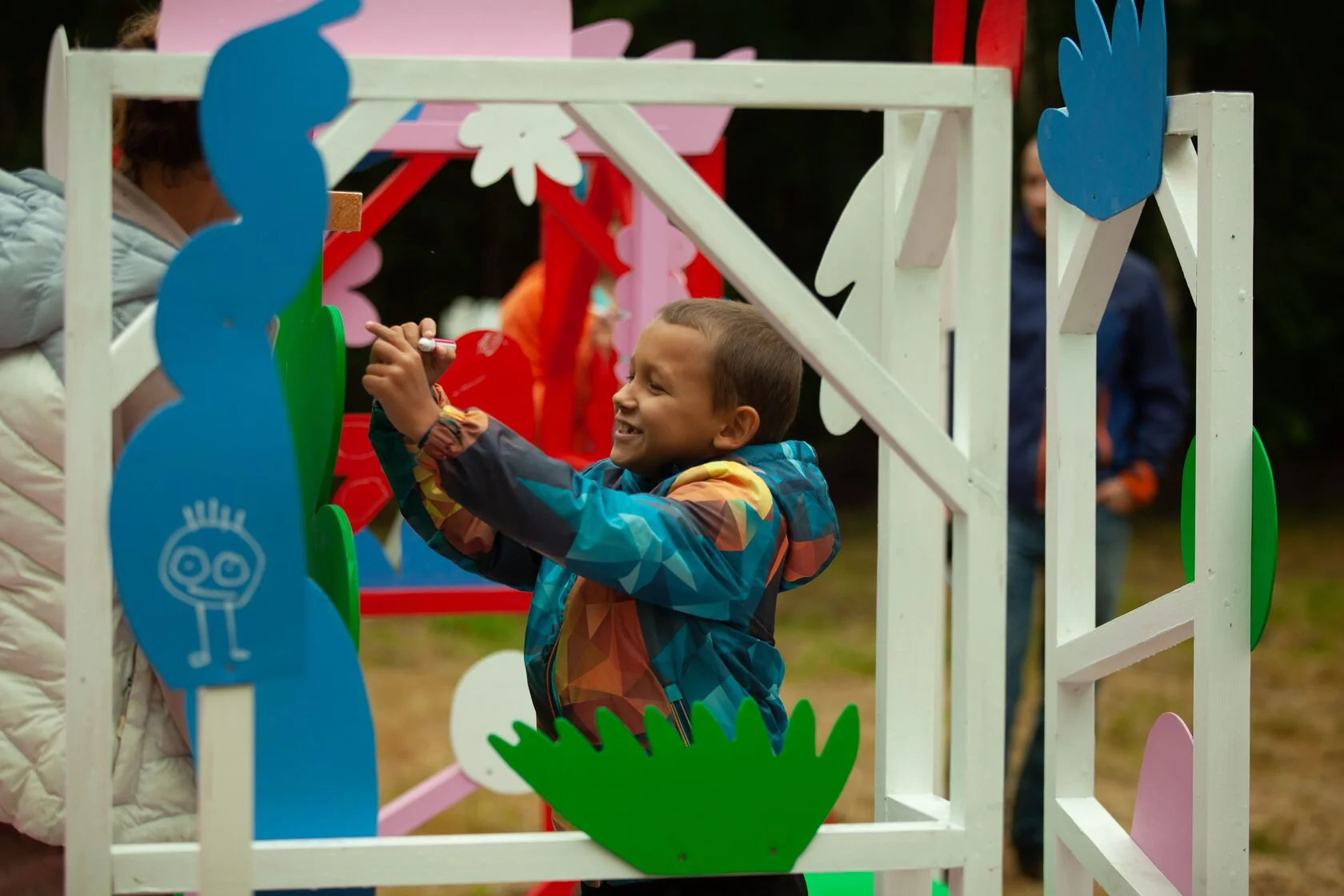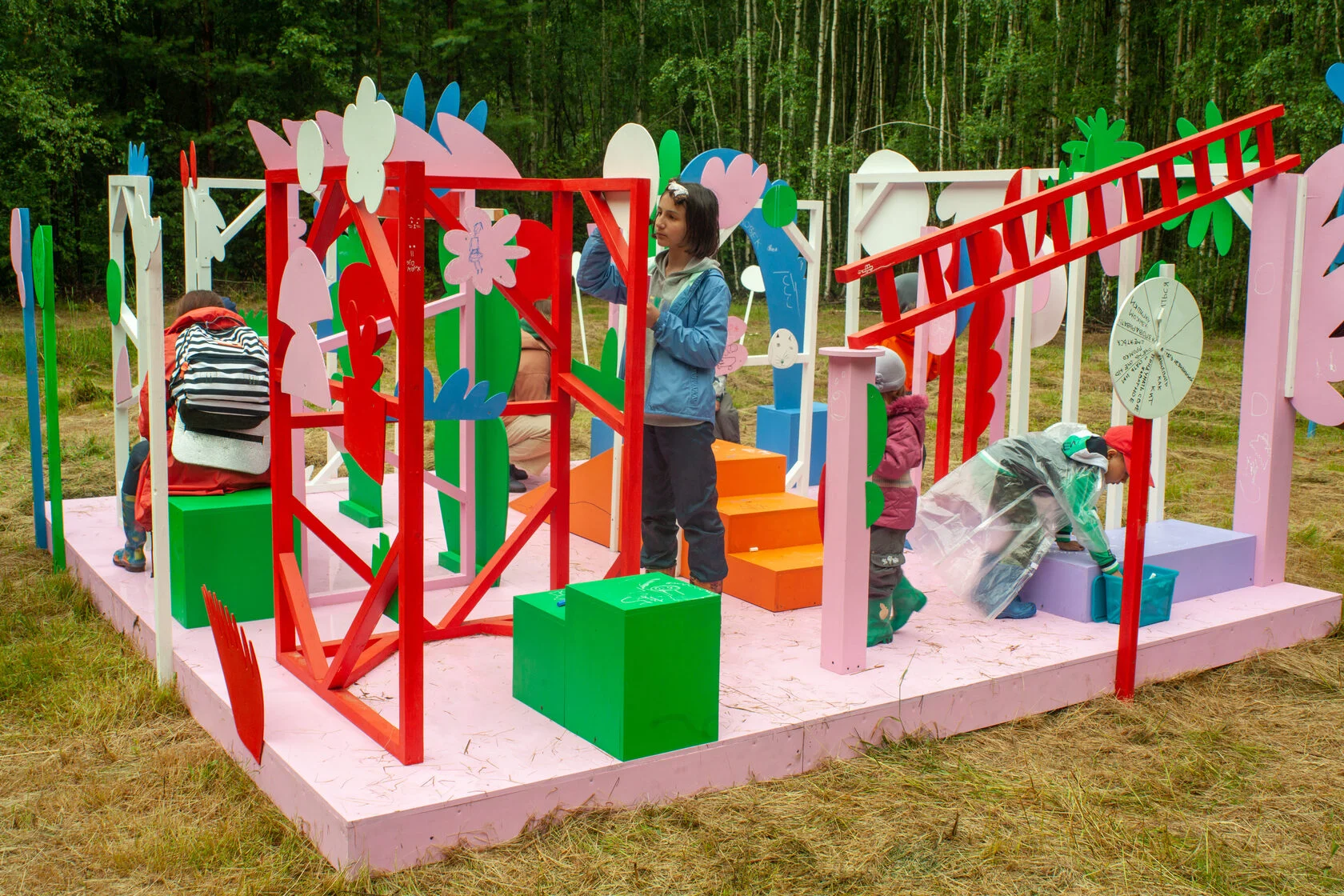 Сама конструкция, визуально напоминающая плот, выполненная из ярких цветов, стала полем для полной детской свободы и независимости от мира взрослых. «Анархии», как таковой, не произошло: основным инструментом для посетителей стали маркеры и карандаши, при помощи которых ребята расписывали и разрисовывали свой «плот».