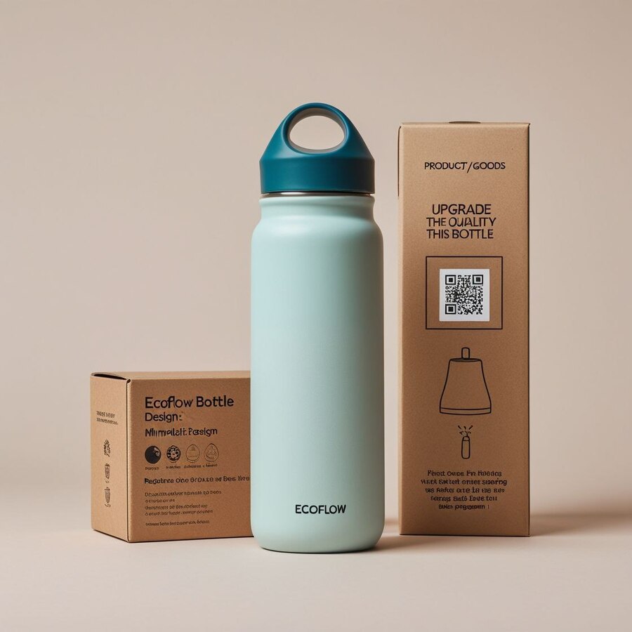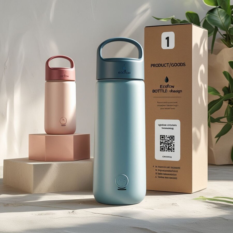 Бутылка EcoFlow — это: Материал: переработанный пластик с добавлением органических компонентов для усиления прочности. Дизайн: минималистичный, с возможностью выбора крышек разных цветов (включая встроенный фильтр для воды). Особенности: термостойкость, стильная упаковка, возможность кастомизации имени на бутылке. Упаковка: коробка из переработанного картона с приятной текстурой, QR-код для регистрации и доступа к бонусной программе.