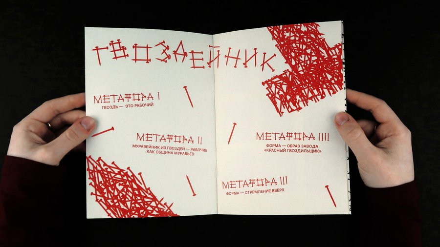 Вдохновением для проекта послужило название и история завода «Красный Гвоздильщик». Мы метафорически сочетаем образы муравейника и гвоздей, где каждый пролетарий работает на благо общества и будущего. Каждый гвоздь — это рабочий завода, являющийся частью единого организма, движимого общими ценностями, подобно тому, как устроена община муравьёв.