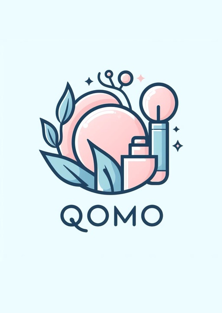 Далее упаковку: 4. create packaging for cosmetic products name QOMO, using light pink and light blue