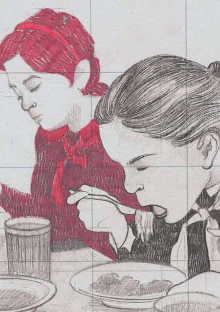 Еще будучи школьницей, рисуя на полях в тетрадке в клетку, я заметила систему, которую стала изучать в своем скетчбуке. Именно поэтому в качестве носителя для скетчбука я выбрала обычную школьную тетрадь.