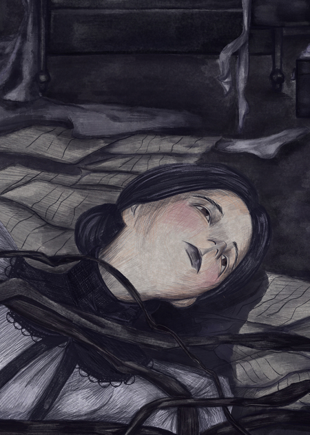 Серия портретных иллюстраций американской поэтессы Эмили Дикинсон, в которых она находится в привычной для себя среде.