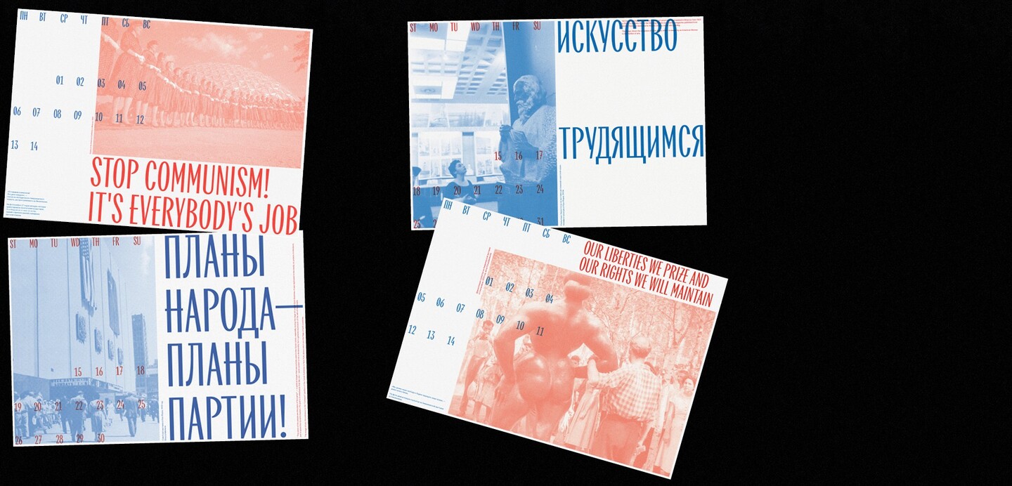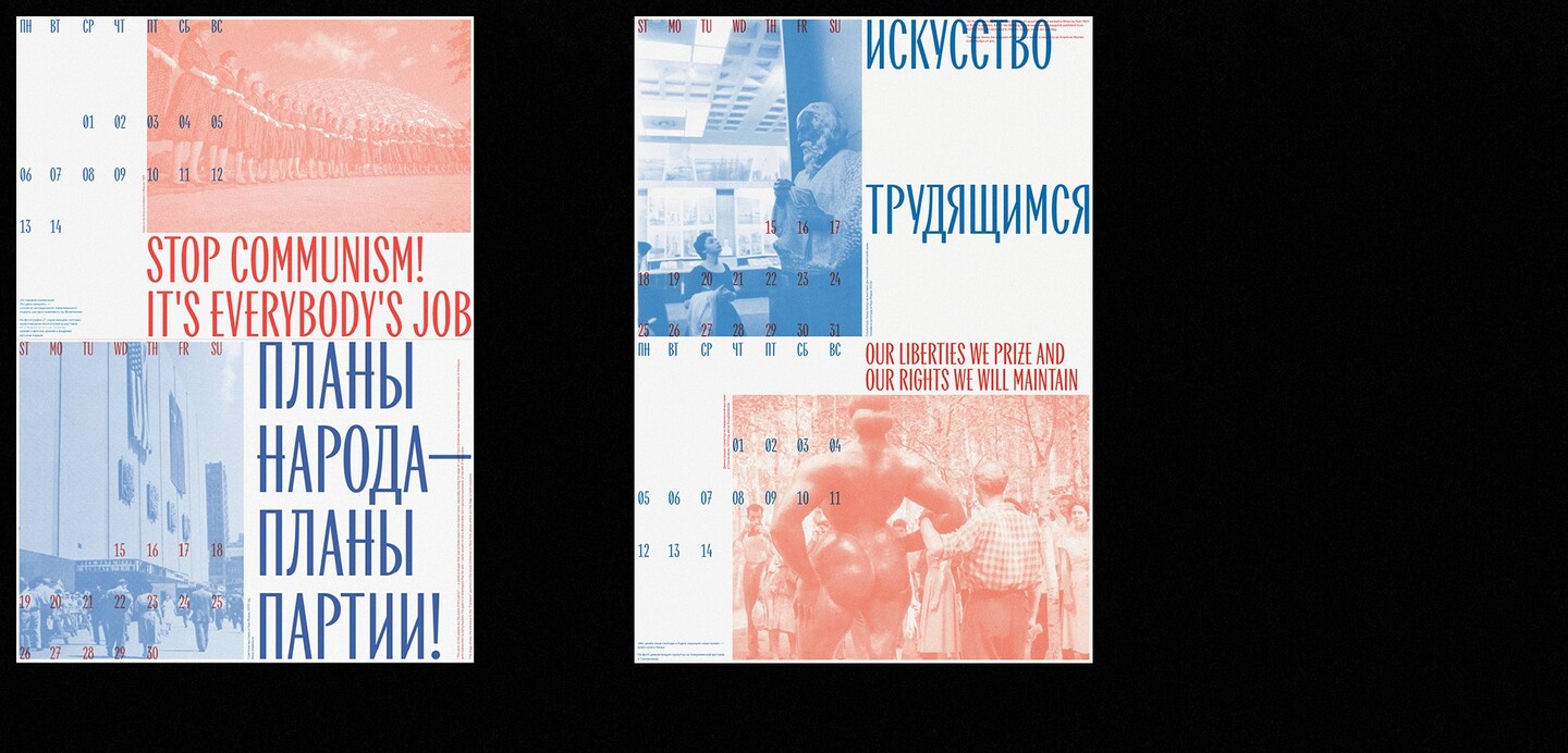 Посвящённый Американской выставке в Сокольниках и Советской выставке в Нью-Йорке 1959 года, календарь подчеркивает парадоксальную схожесть двух стран и демонстрирует скрытую пропаганду каждой из них.